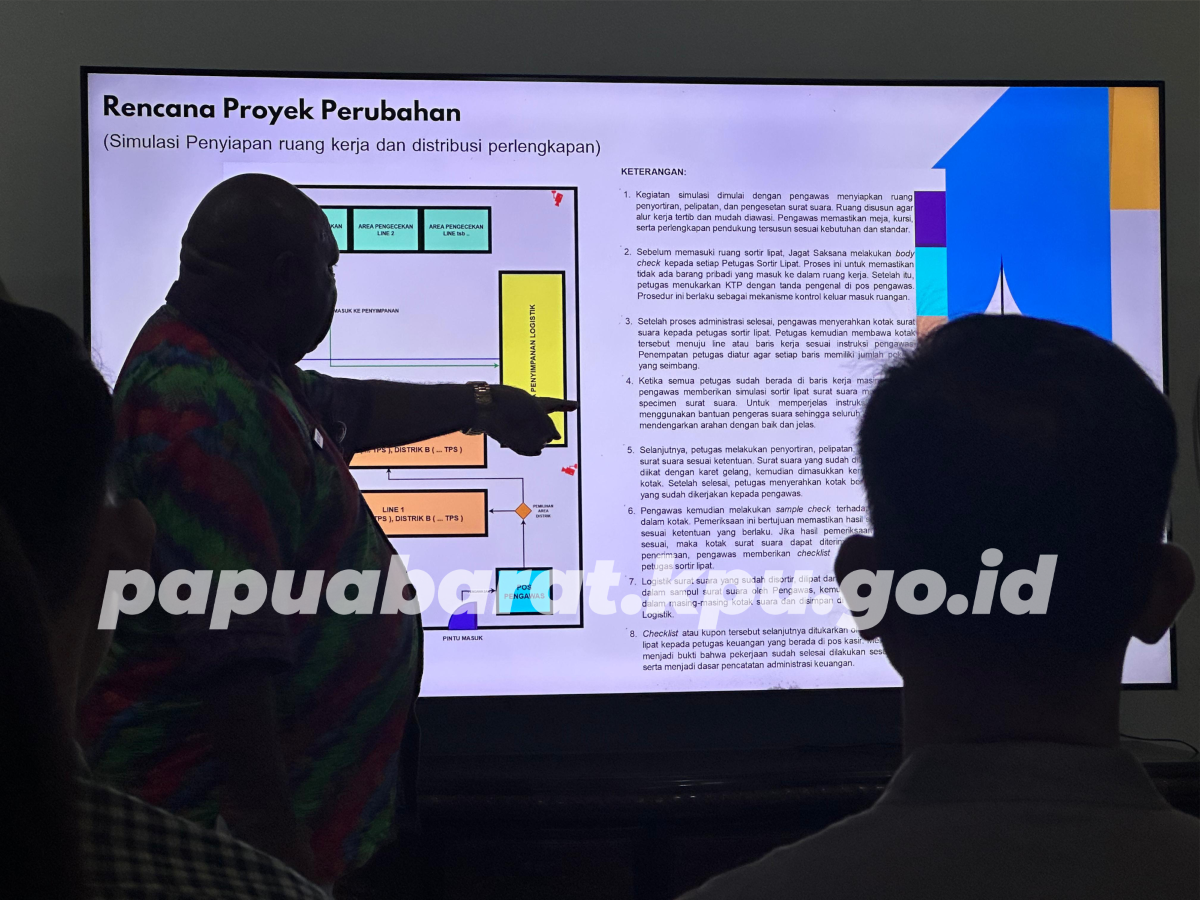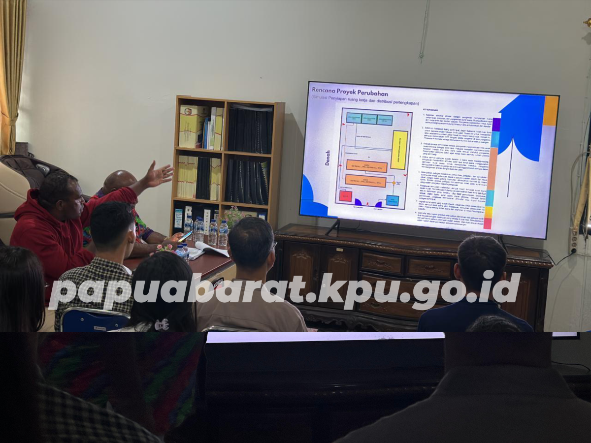 Manokwari, 19/09/2025 – Komisi Pemilihan Umum (KPU) Provinsi Papua Barat terus memperkuat komitmennya dalam mewujudkan tata kelola logistik Pemilu yang lebih efektif, efisien, dan adaptif terhadap tantangan geografis wilayah Papua Barat. Hal ini disampaikan oleh Sekretaris KPU Papua Barat, Michael Mote, saat memaparkan Proyek Perubahan Jangka Pendek dalam kegiatan sosialisasi dan implementasi yang digelar di Kantor KPU Kabupaten Manokwari, Jumat (19/9/2025).