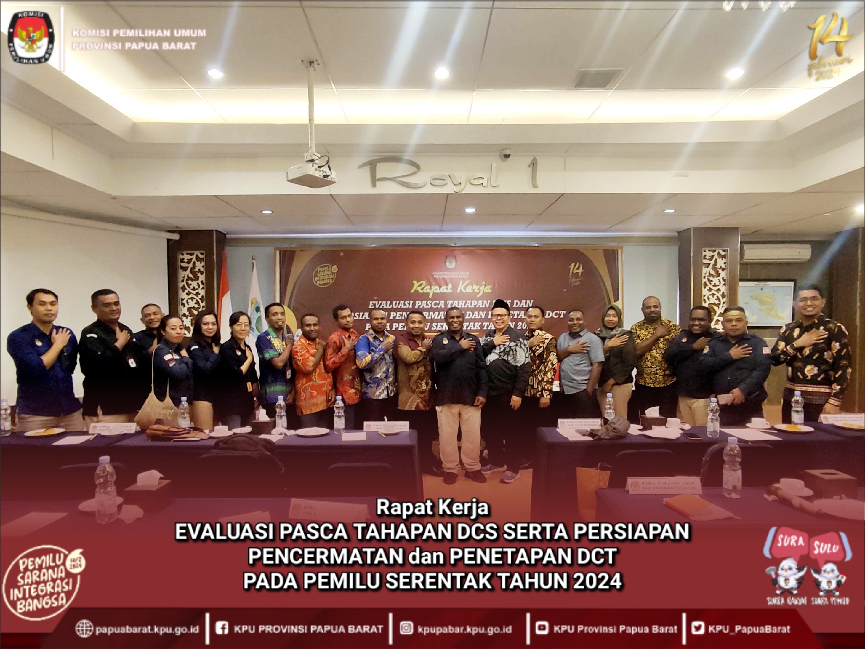 #KakaTemanPemilih, Tujuh Komisi Pemilihan Umum (KPU) Kabupaten Se-Papua Barat mengikuti Rapat Kerja yang dilaksanakan oleh KPU Provinsi Papua Barat di Hotel Aston Niu Manokwari pada tanggal 7-10 September 2023. Dalam rapat tersebut dihadiri oleh anggota KPU Divisi Teknis Penyelenggara, Divisi Hukum Dan Pengawasan, Kepala Subbagian teknis serta admin atau operator Silon Se-Papua Barat.