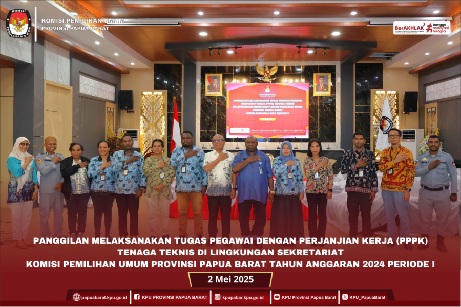 Sebanyak 11 pegawai baru di tingkat provinsi dan 35 pegawai lainnya di tingkat kabupaten telah lolos seleksi PPPK Periode I dan resmi menjadi bagian dari keluarga besar KPU Papua Barat. Mereka sebelumnya adalah Tenaga Administrasi dan Pegawai Pemerintah Non Pegawai Negeri (PPNPN) yang telah mengabdi di KPU dengan masa kerja yang bervariasi, mulai dari 5 hingga 11 tahun.