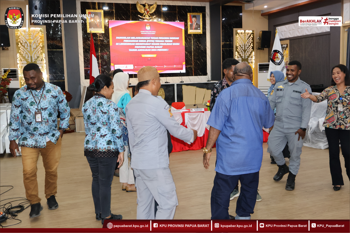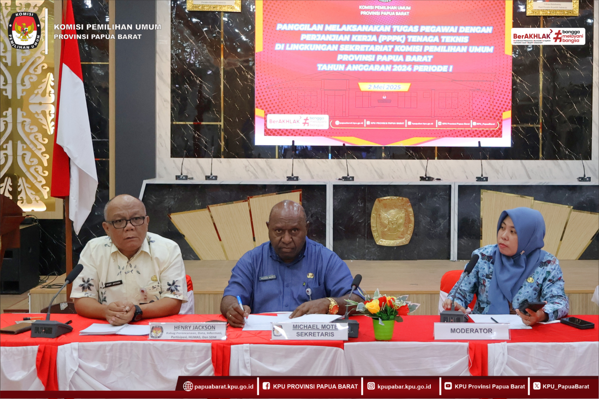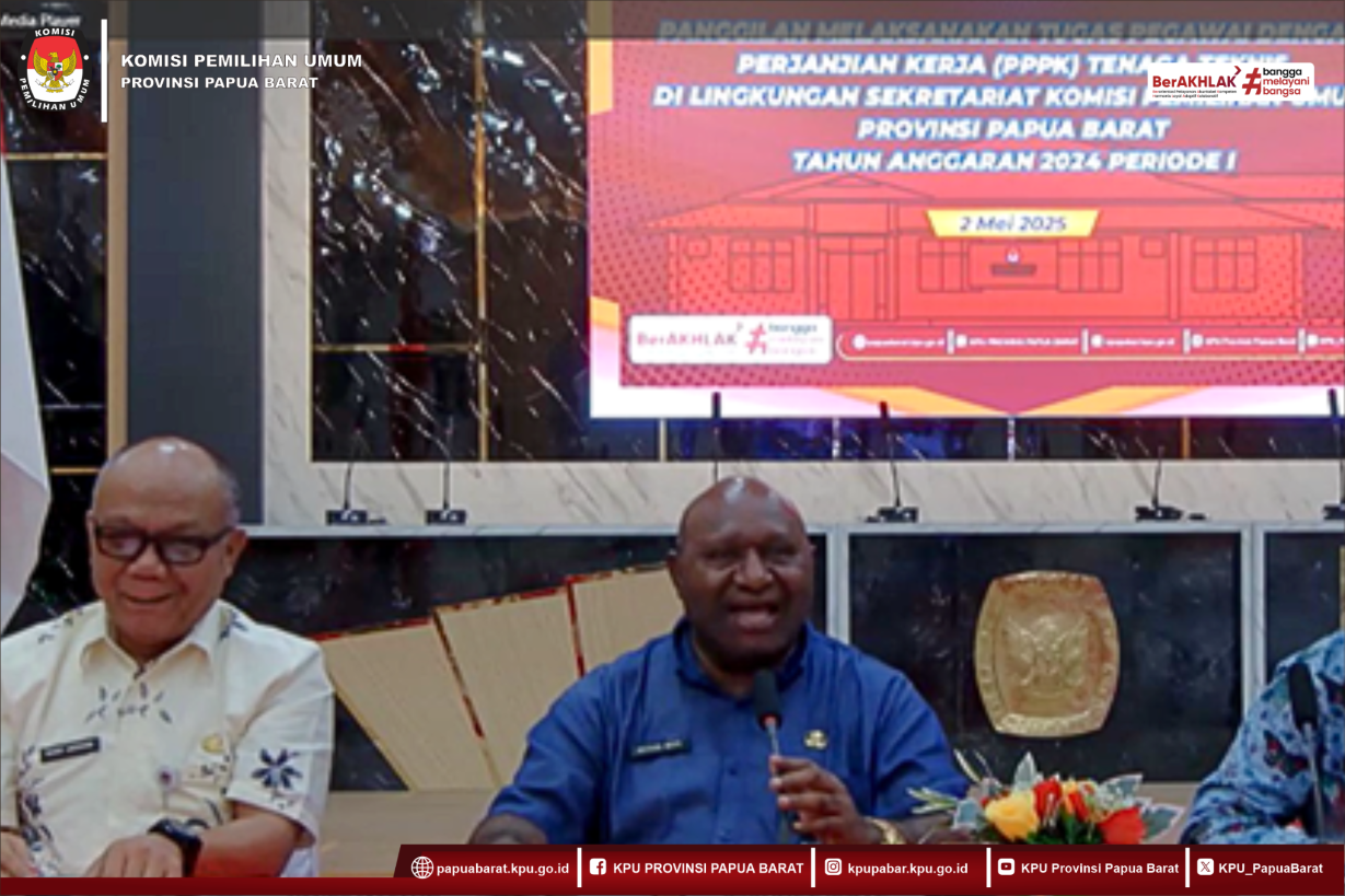Manokwari, Papua Barat - Komisi Pemilihan Umum (KPU) Provinsi Papua Barat baru-baru ini menggelar acara penyambutan pegawai baru yang telah diangkat sebagai Pegawai Pemerintah dengan Perjanjian Kerja (PPPK) Tenaga Teknis di lingkungan Sekretariat KPU Provinsi Papua Barat. Acara ini berlangsung di Aula Husni Kamil Manik Kantor Sekretariat KPU Provinsi Papua Barat (2/5/2025).