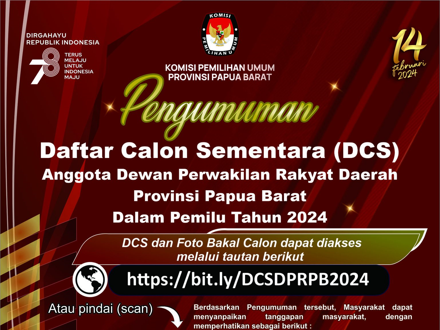 Pengumuman Daftar Calon Sementara (DCS) Anggota DPRD Provinsi Papua Barat dalam Pemilu 2024