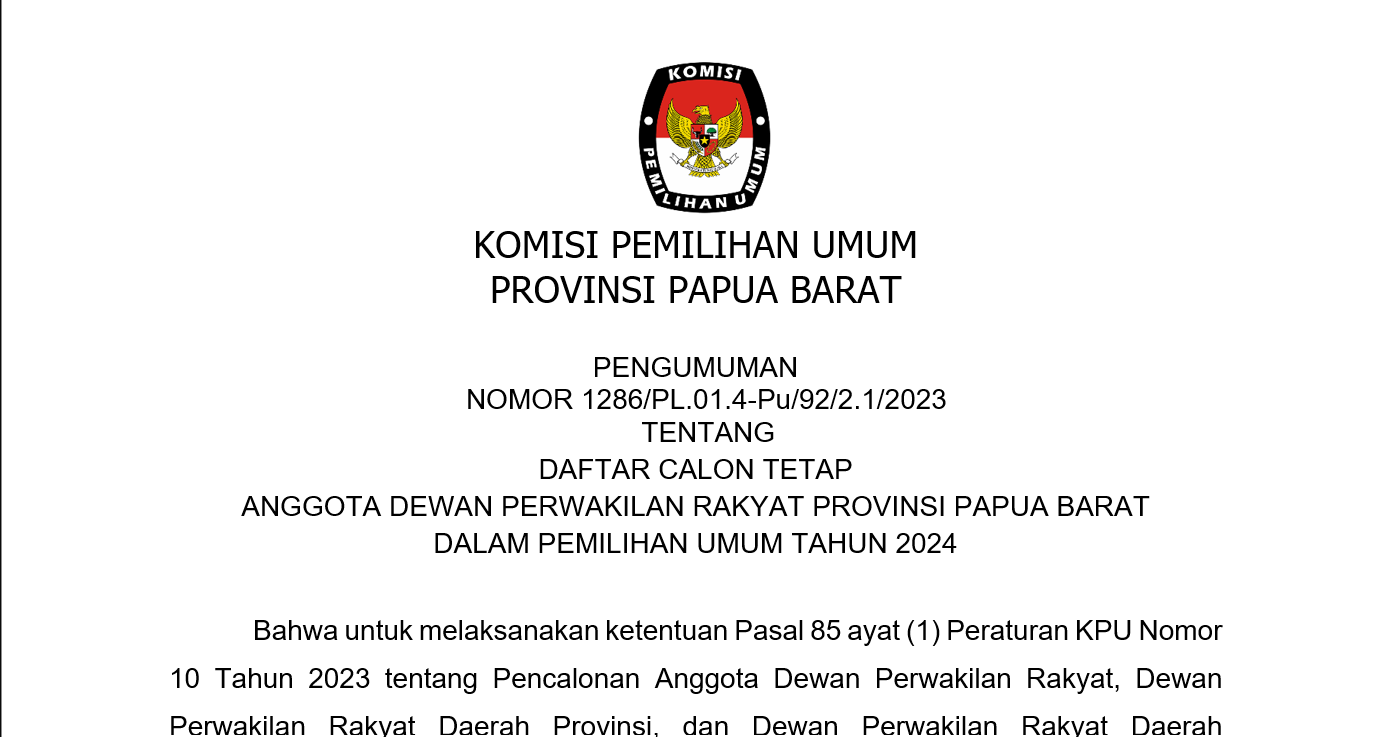 Pengumuman Daftar Calon Tetap (DCT) Anggota DPR Papua Barat dalam Pemilu 2024