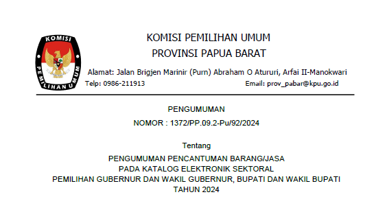 PENGUMUMAN PENCANTUMAN BARANG/JASA PADA KATALOG ELEKTRONIK SEKTORAL