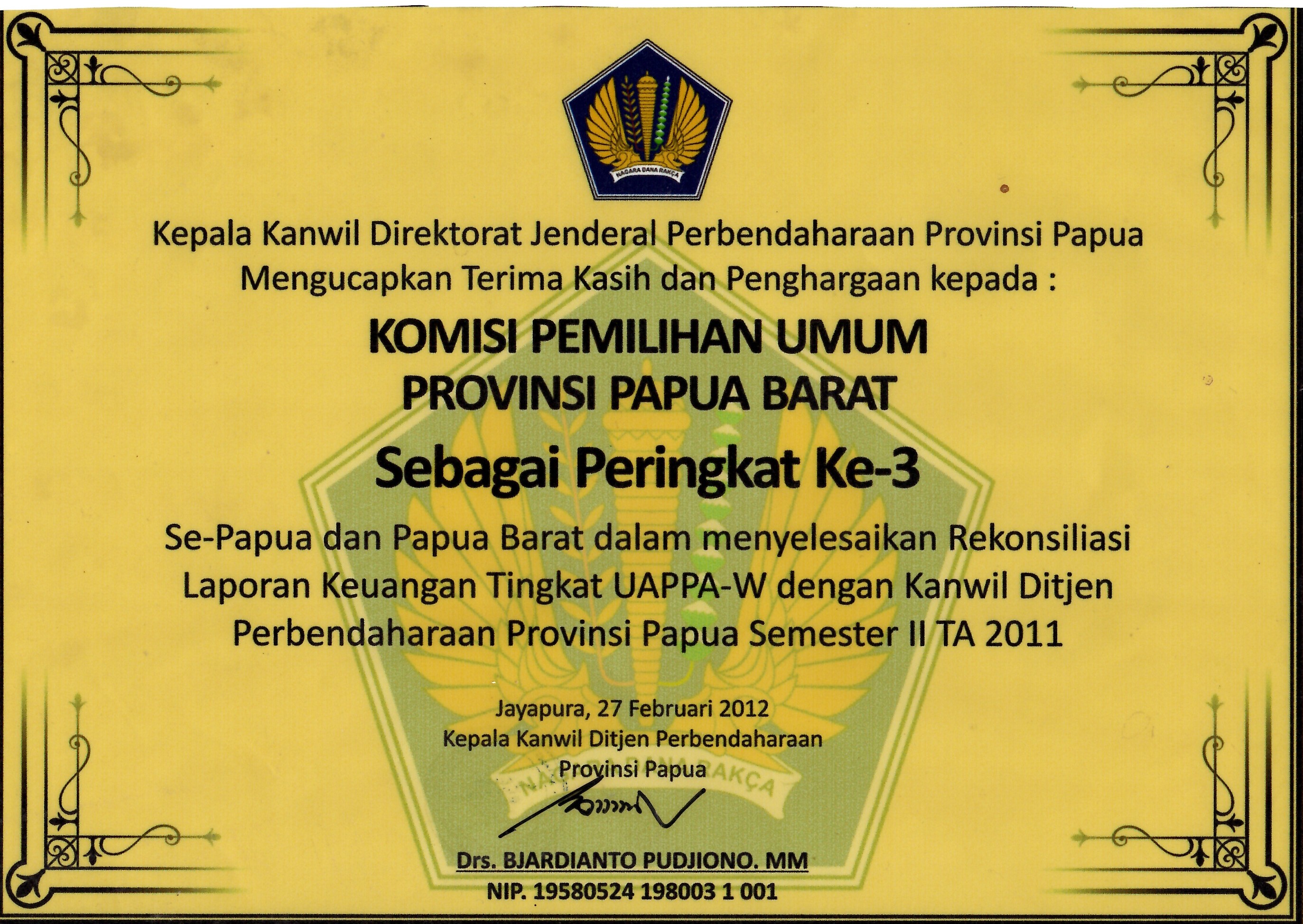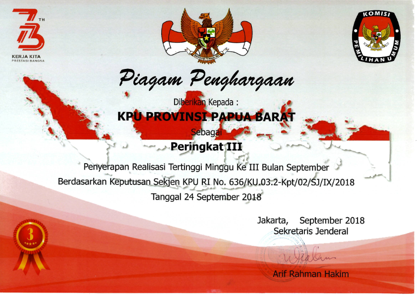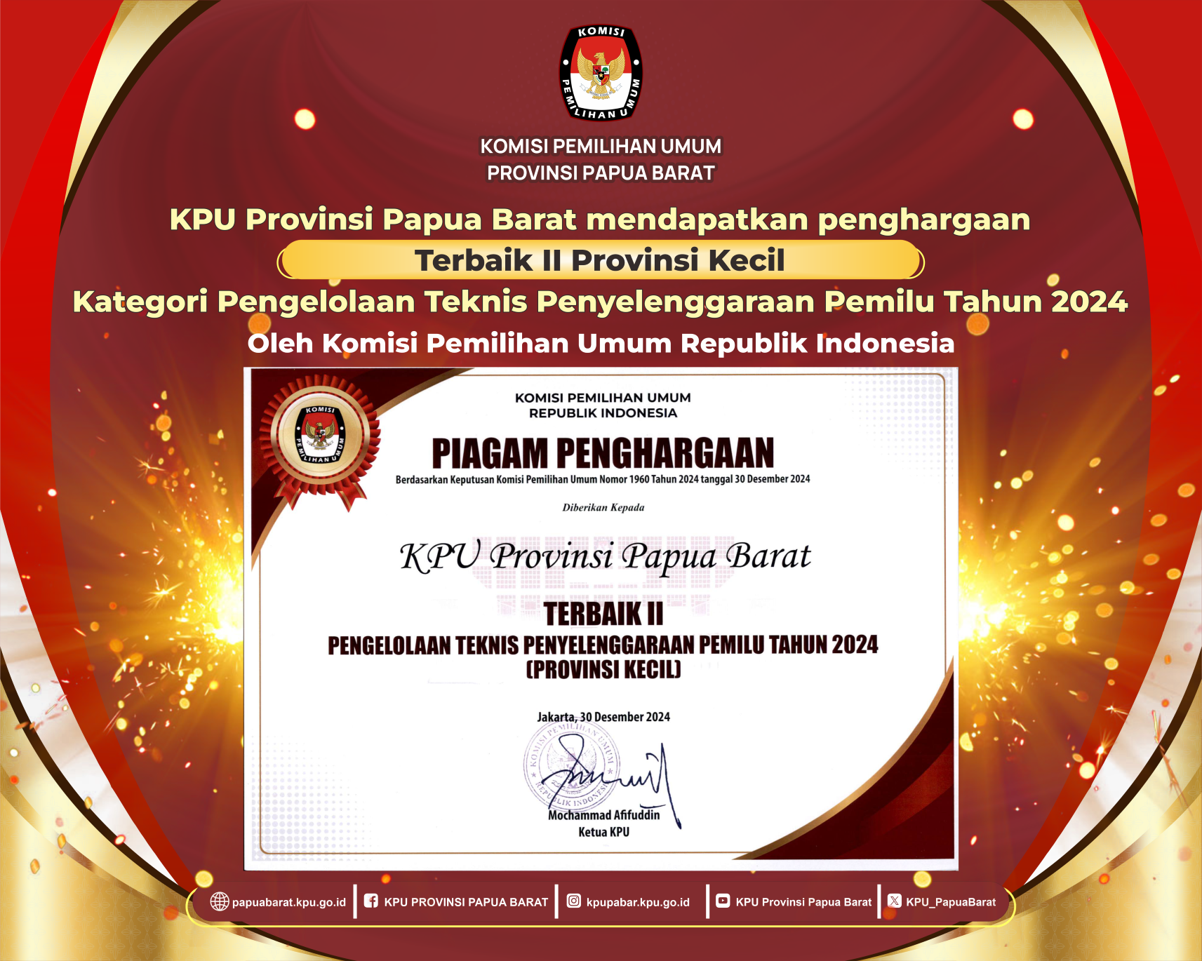 KPU Provinsi Papua Barat mendapatkan penghargaan Terbaik II Provinsi Kecil Kategori Pengelolaan Teknis Penyelenggaraan Pemilu Tahun 2024